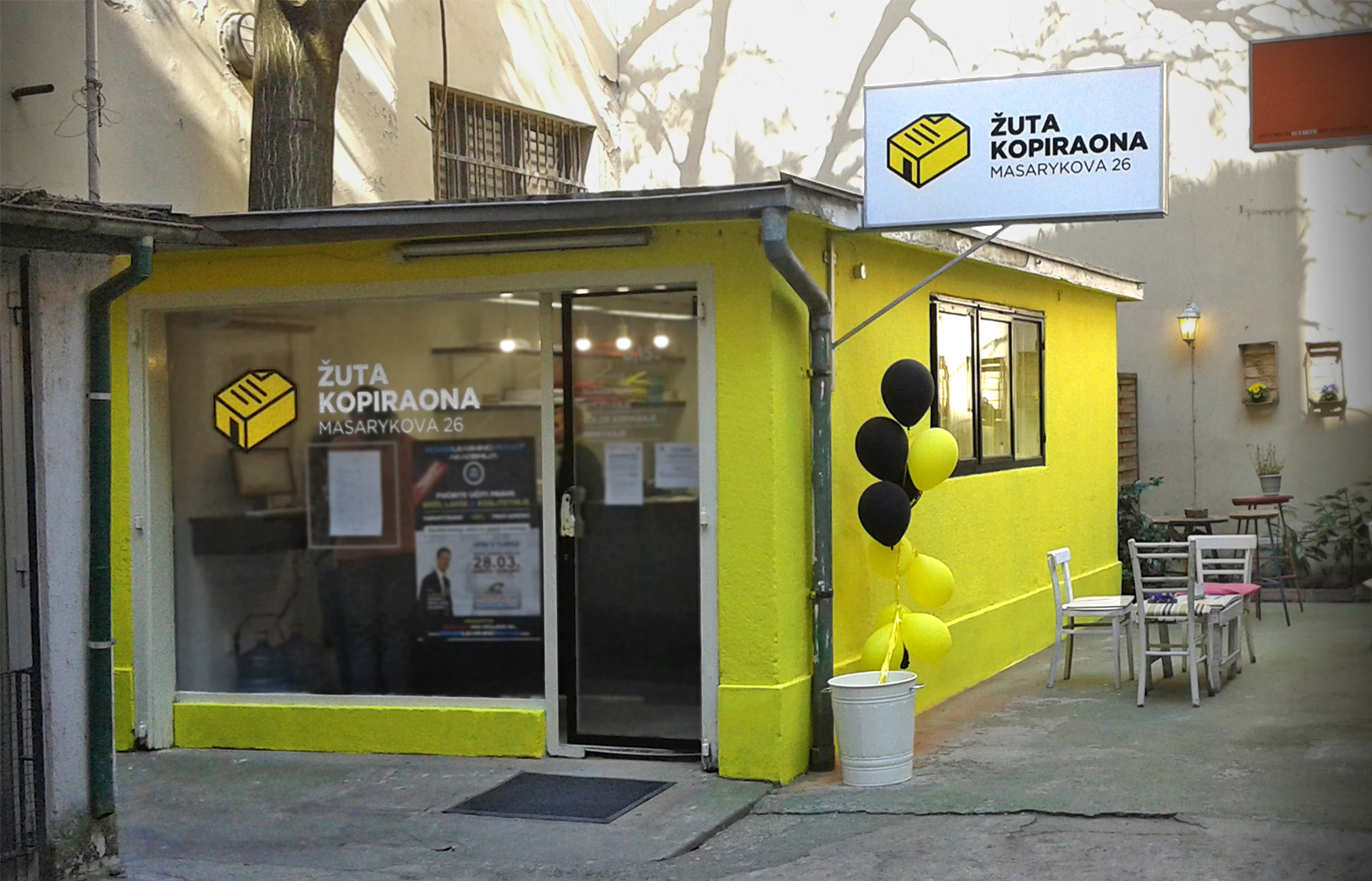 Žuta kopiraona je stvarno žuta kućica u kojoj je kopiraonica.