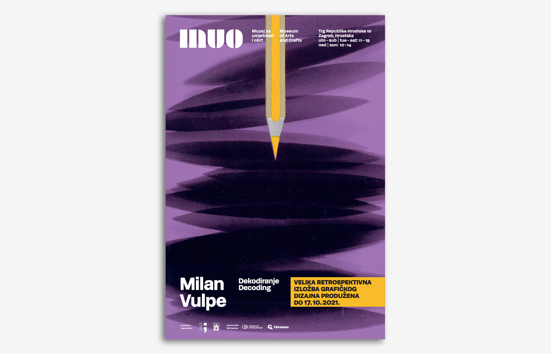 Velika retrospektivna izložba jednog od najznačajnijih hrvatskih grafičkih dizajnera Milana Vulpea na kojoj je bilo izloženo čak osam stotina odabranih radova ovog istaknutog pionira hrvatskog dizajna.